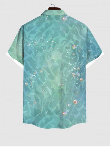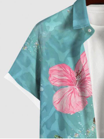 Chemise Hawaïenne Boutonnée à Imprimé Vague D'Eau et Fleur avec Poche Grande-Taille pour Hommes - Vert Clair - Vert Clair