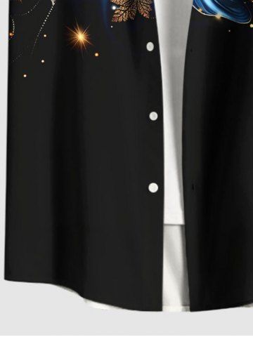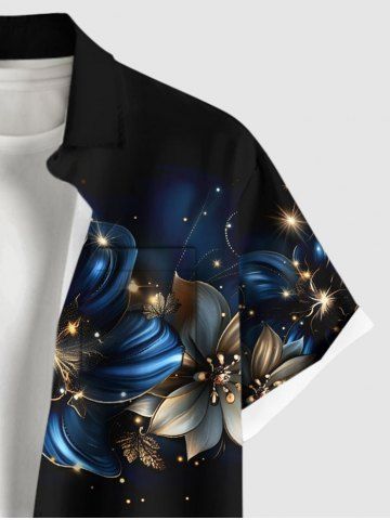 Chemise Hawaïenne Boutonnée Etoile Fleur Galaxie Imprimés de Grande Taille avec Poche à Paillettes - Noir - Noir