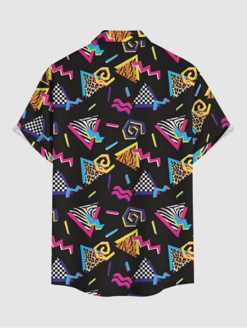Chemise hawaïenne grande taille à carreaux léopard et imprimé triangle, boutons et poche, pour homme - Noir - Noir