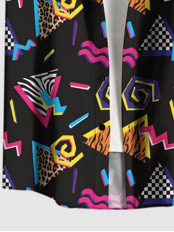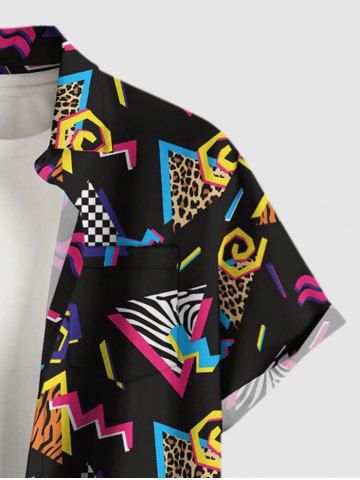Chemise hawaïenne grande taille à carreaux léopard, imprimé triangle, boutons et poche pour homme - Noir - Noir