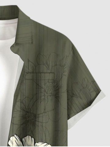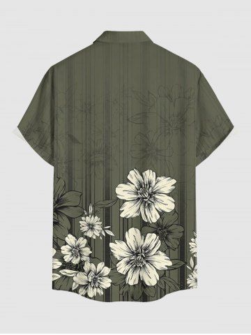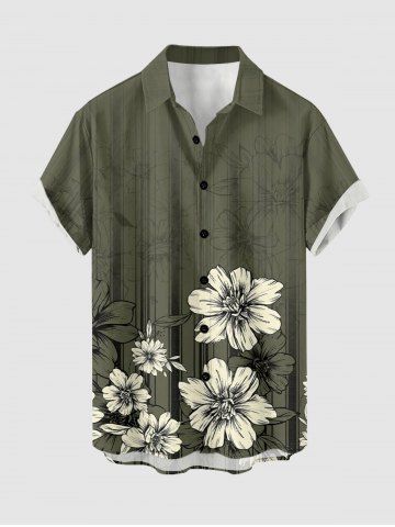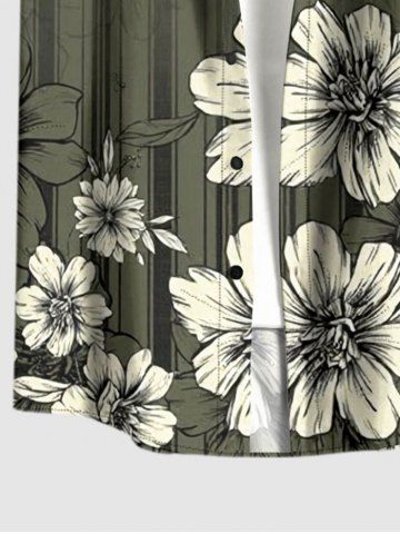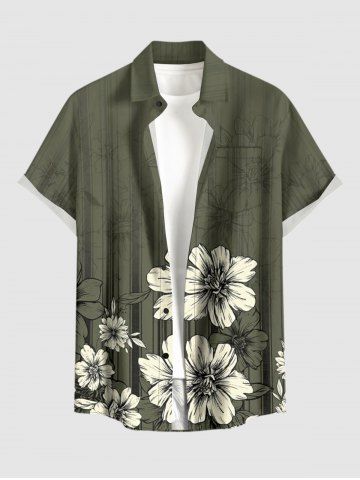 Chemise hawaïenne grande taille à fleurs et rayures, boutons et poches pour homme - Vert Armée - 6xl