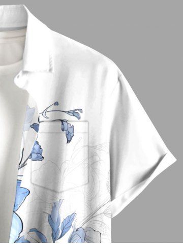 Chemise hawaïenne grande taille à fleurs, imprimé tropical, boutons et poches pour homme - Blanc - Blanc
