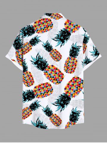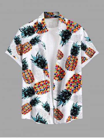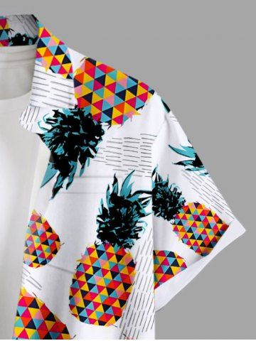 Chemise hawaïenne grande taille à imprimé ananas géométrique et coloré avec poches boutonnées pour homme - Blanc - Blanc