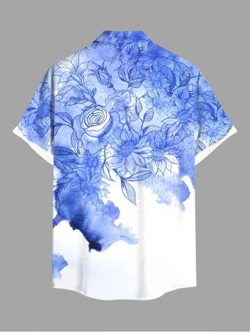Chemise hawaïenne grande taille à imprimé aquarelle de tournesols et de roses, avec poches et boutons, pour homme - Bleu Ciel - Bleu Ciel