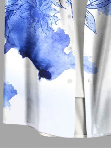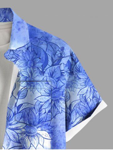 Chemise hawaïenne grande taille à imprimé aquarelle de tournesols et de roses, avec poches et boutons, pour homme - Bleu Ciel - Bleu Ciel