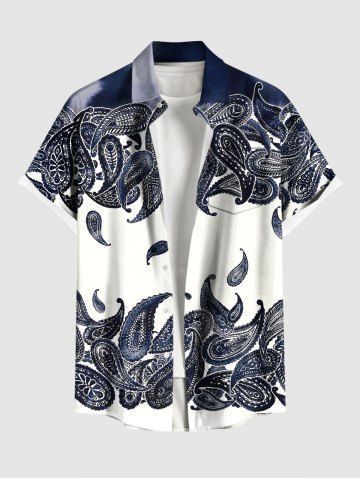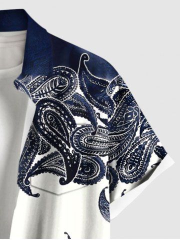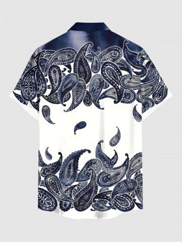 Chemise hawaïenne grande taille à imprimé cachemire tie-dye et poches boutonnées pour homme - Bleu De Minuit - L