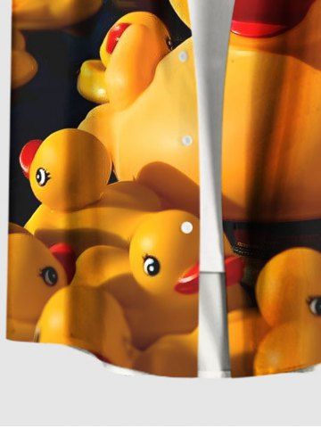 Chemise à Manches Courts> Chemise hawaïenne grande taille à imprimé canard cool et poches boutonnées pour homme