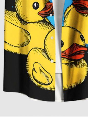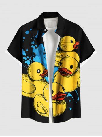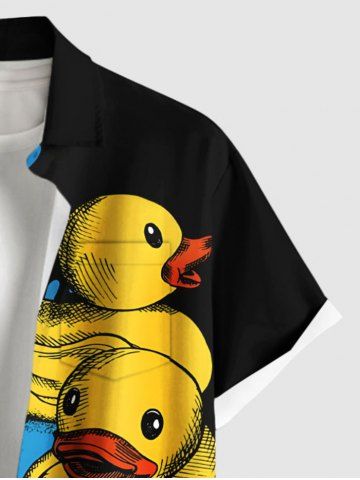 Chemise hawaïenne grande taille à imprimé canard mignon et poches boutonnées pour homme - Noir - Noir