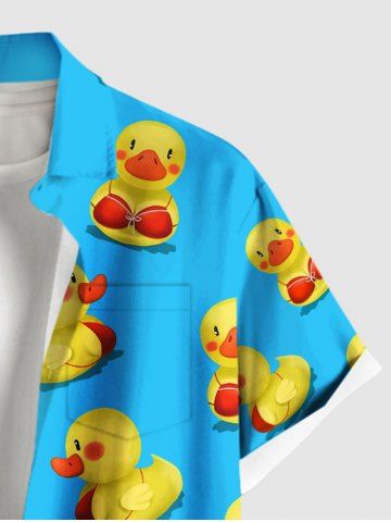 Chemise hawaïenne grande taille à imprimé canards et boutons avec poches pour homme - Bleu Ciel - Bleu Ciel