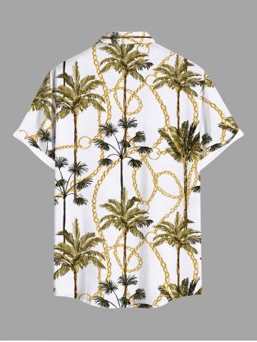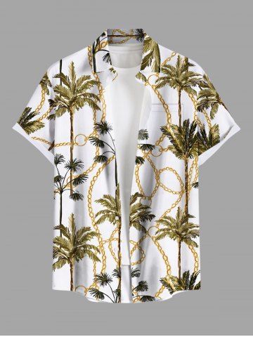 Chemise hawaïenne grande taille à imprimé chaîne de cocotiers et poches boutonnées pour homme - Blanc - Blanc