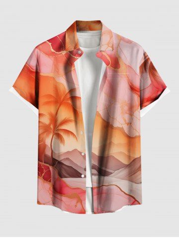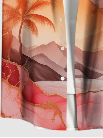 Chemise hawaïenne grande taille à imprimé ciel, nuages et cocotiers, avec poches boutonnées pour homme - Orange Clair - L