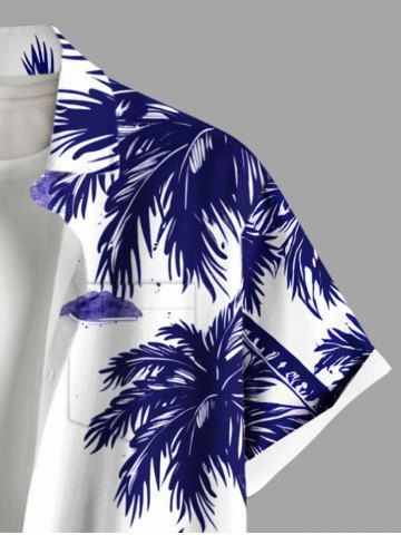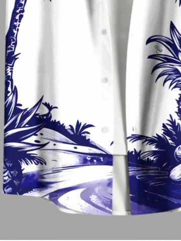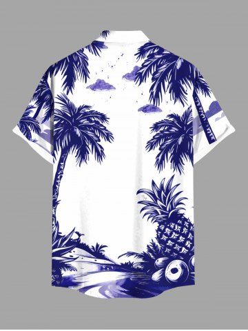 Chemise hawaïenne grande taille à imprimé cocotier, ananas et nuages, avec poches et boutons, pour homme - Blanc - Blanc