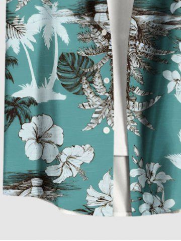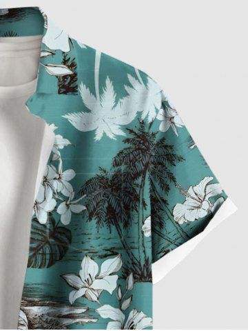 Chemise hawaïenne grande taille à imprimé cocotier, feuilles tropicales, hibiscus et fleurs pour homme - Vert - Vert