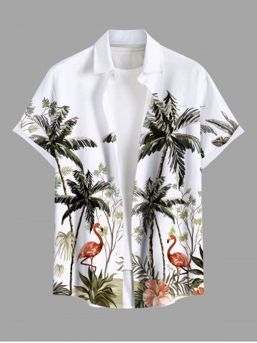 Chemise hawaïenne grande taille à imprimé cocotier, flamant rose, hibiscus et fleurs, boutons et poches pour homme - Blanc - Blanc