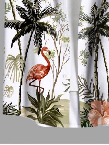 Chemise hawaïenne grande taille à imprimé cocotier, flamant rose, hibiscus et fleurs, boutons et poches pour homme - Blanc - Blanc