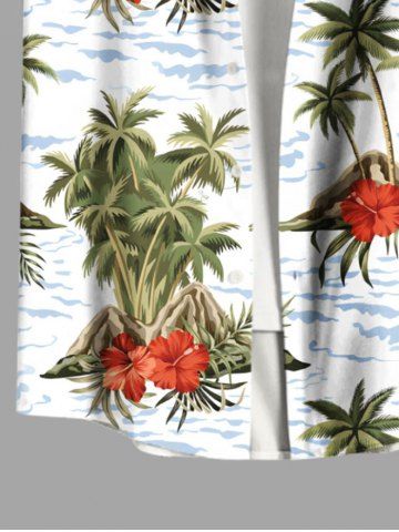Chemise hawaïenne grande taille à imprimé cocotier, hibiscus, fleurs, vagues de la mer, boutons et poches pour homme - Blanc - Blanc