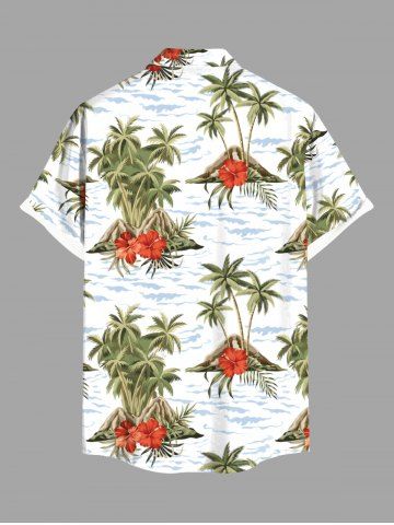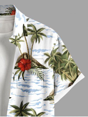 Chemise hawaïenne grande taille à imprimé cocotier, hibiscus, fleurs, vagues de la mer, boutons et poches pour homme - Blanc - Blanc