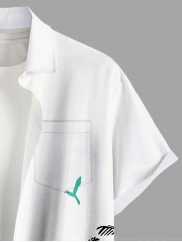 Chemise hawaïenne grande taille à imprimé cocotier, oiseaux et gouttes de pluie, boutons et poches pour homme - Blanc - Blanc