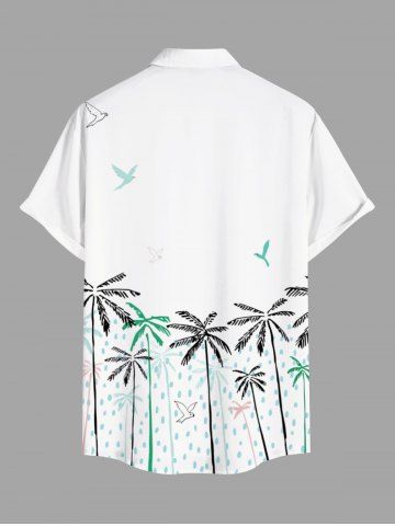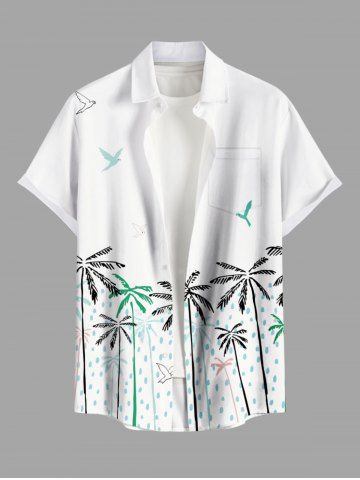 Chemise hawaïenne grande taille à imprimé cocotier, oiseaux et gouttes de pluie, boutons et poches pour homme - Blanc - Blanc