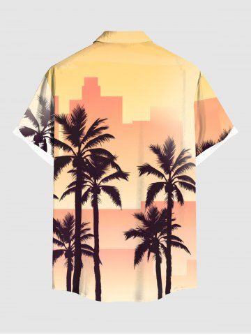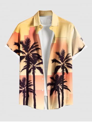 Chemise hawaïenne grande taille à imprimé cocotier ombré et boutons avec poches pour homme - Orange Clair - Xl