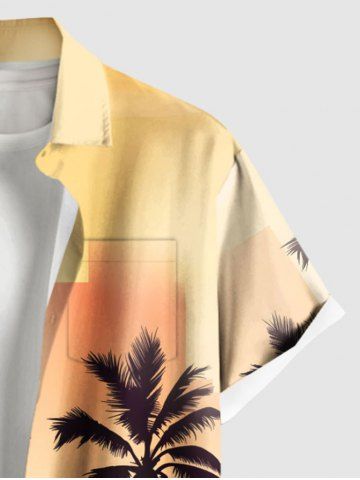 Chemise hawaïenne grande taille à imprimé cocotier ombré et boutons avec poches pour homme - Orange Clair - 6xl