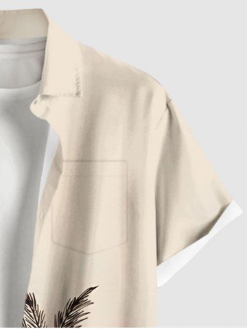 Chemise hawaïenne grande taille à imprimé cocotier peint à la main et à poches boutonnées pour homme - Abricot - Abricot