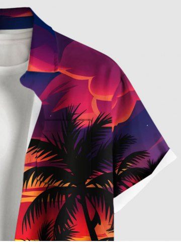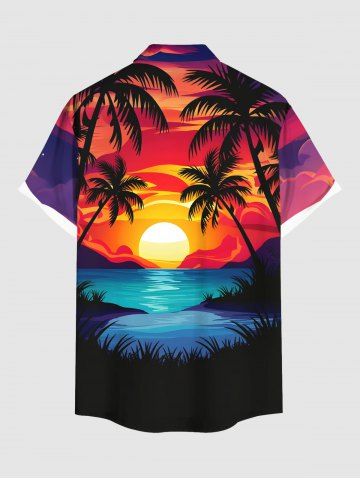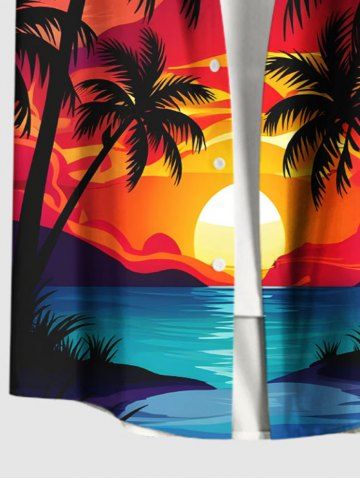 Chemise à Manches Courts > Chemise hawaïenne grande taille à imprimé cocotier, soleil, paysage marin, nuages, boutons et poches pour homme