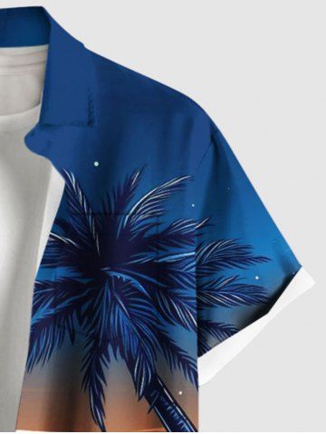 Chemise hawaïenne grande taille à imprimé cocotier, soleil, paysage marin, vagues, hamac, boutons, poche, pour homme - Bleu - Bleu