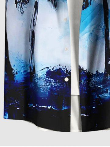 Chemise hawaïenne grande taille à imprimé cocotier, tie-dye, peinture à l'huile, boutons, poches, pour homme - Bleu - Bleu
