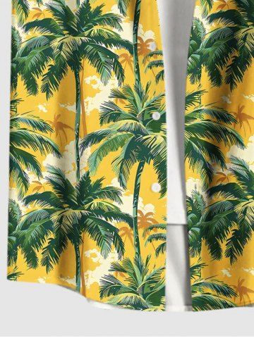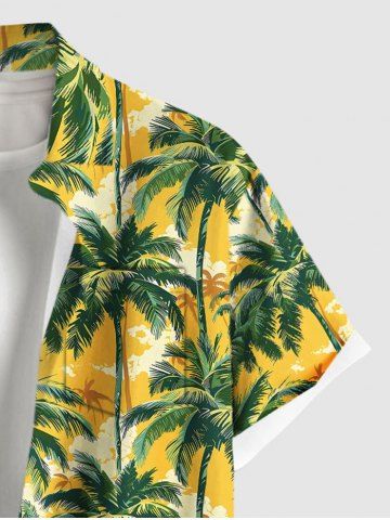 Chemise hawaïenne grande taille à imprimé cocotiers, boutons et poches pour homme - Jaune - Jaune