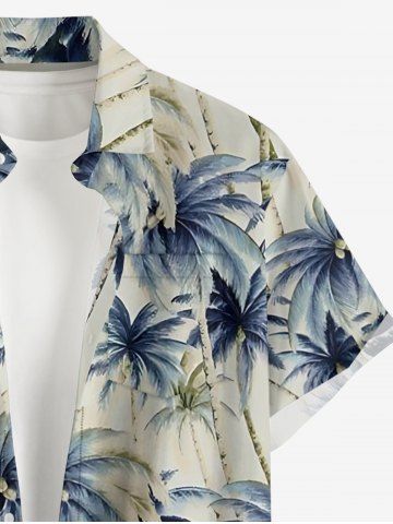 Chemise à Manches Courts> Chemise hawaïenne grande taille à imprimé cocotiers, boutons et poches pour homme