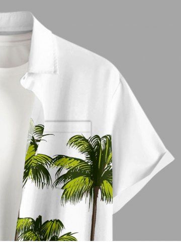 Chemise hawaïenne grande taille à imprimé cocotiers, boutons et poches pour homme - Blanc - Blanc