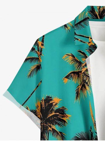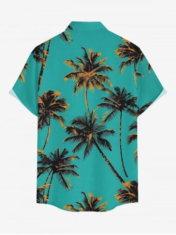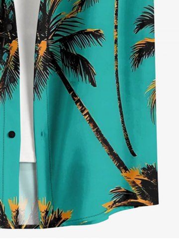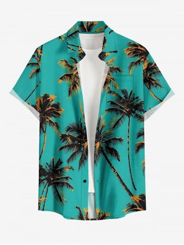 Chemise hawaïenne grande taille à imprimé cocotiers, boutons et poches pour homme - Turquoise Foncée - 6xl