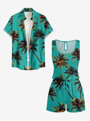 Chemise à Manches Courts > Chemise hawaïenne grande taille à imprimé cocotiers, boutons et poches pour homme