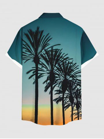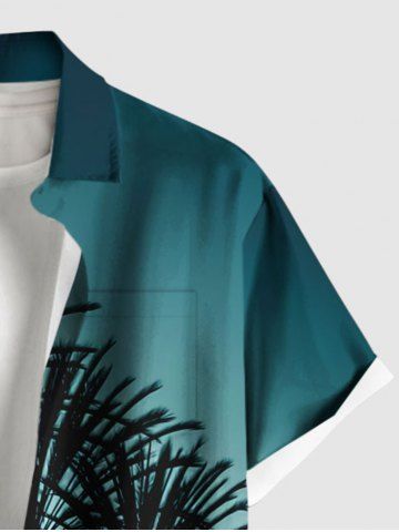 Chemise hawaïenne grande taille à imprimé cocotiers et ciel ombré pour homme - Vert Profond - 2xl