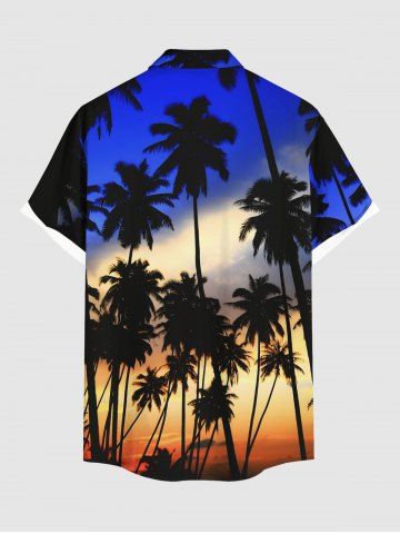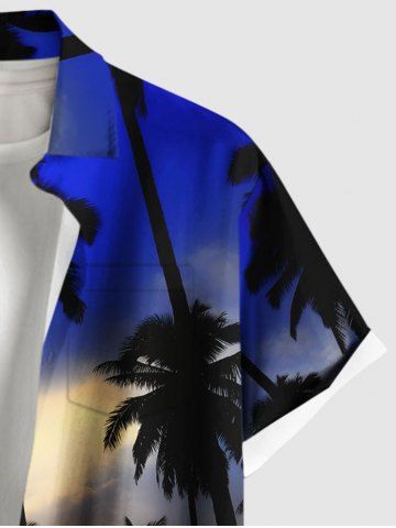 Chemise hawaïenne grande taille à imprimé cocotiers et crépuscule ombré pour homme - Bleu Profond - Xl