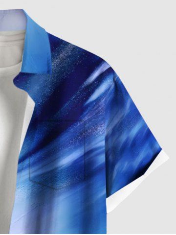 Chemise hawaïenne grande taille à imprimé cocotiers et oiseaux ombrés, boutons et poches pour homme - Bleu - Bleu