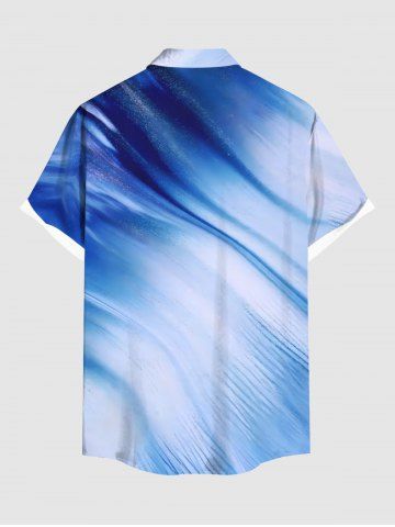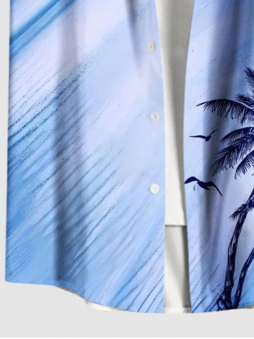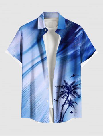 Chemise hawaïenne grande taille à imprimé cocotiers et oiseaux ombrés, boutons et poches pour homme - Bleu - Bleu