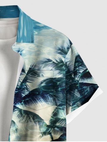 Chemise à Manches Courts> Chemise hawaïenne grande taille à imprimé cocotiers et ondulations d'eau, boutons et poches pour homme