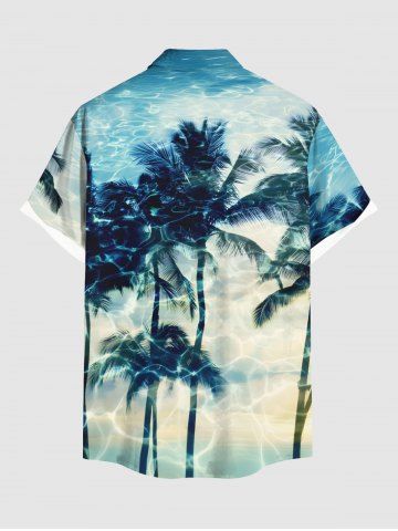 Chemise à Manches Courts> Chemise hawaïenne grande taille à imprimé cocotiers et ondulations d'eau, boutons et poches pour homme