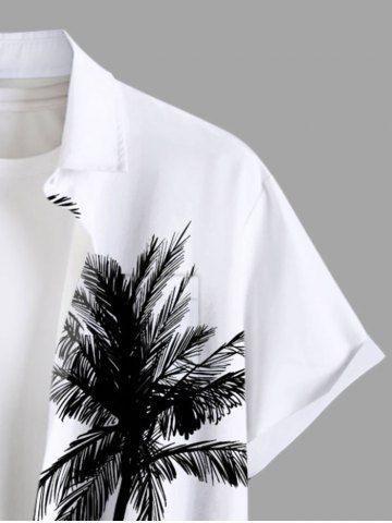 Chemise hawaïenne grande taille à imprimé cocotiers et paysage marin, avec poches et boutons, pour homme - Blanc - Blanc