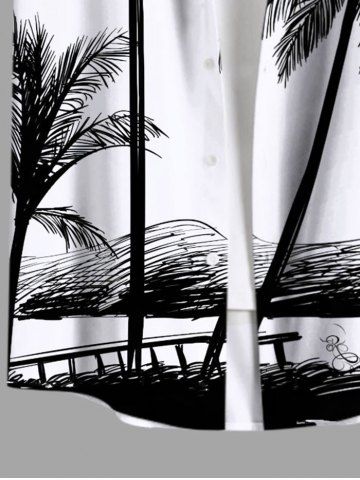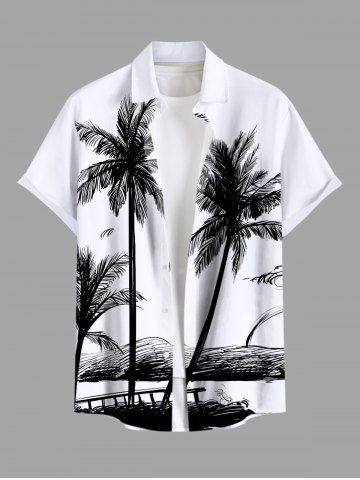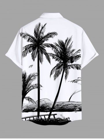 Chemise hawaïenne grande taille à imprimé cocotiers et paysage marin, avec poches et boutons, pour homme - Blanc - Blanc