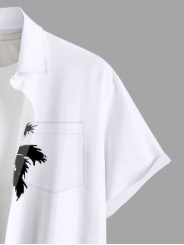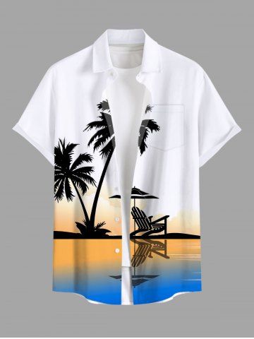 Chemise hawaïenne grande taille à imprimé cocotiers et paysage marin ombré colorblock, boutons et poches pour homme - Blanc - Blanc