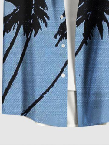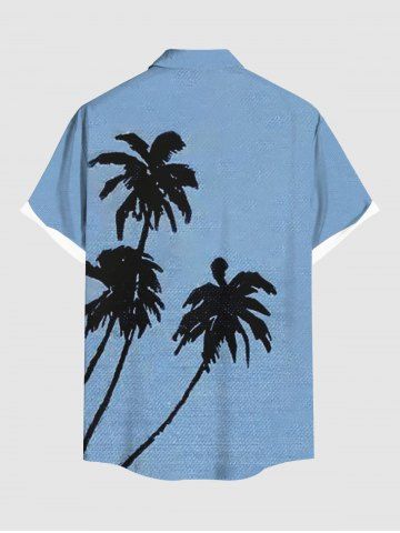 Chemise hawaïenne grande taille à imprimé cocotiers et peinture à l'encre pour homme - Bleu - Bleu