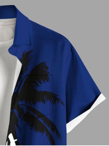 Chemise hawaïenne grande taille à imprimé cocotiers et poches boutonnées pour homme - Bleu Profond - M