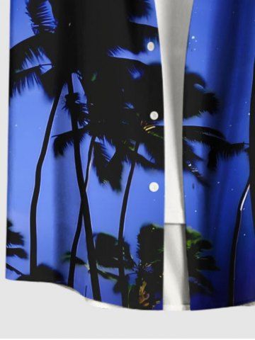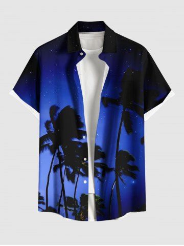Chemise hawaïenne grande taille à imprimé cocotiers, galaxie et boutons, pour homme - Bleu - Bleu