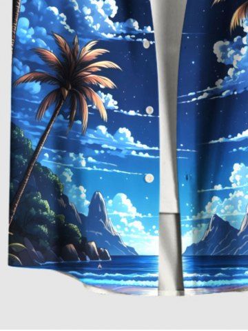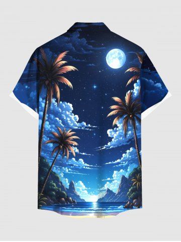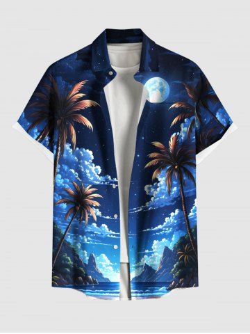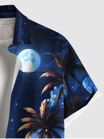 Chemise à Manches Courts> Chemise hawaïenne grande taille à imprimé cocotiers, nuages, lune et galaxie, avec poches boutonnées, pour homme