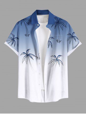 Chemise hawaïenne grande taille à imprimé cocotiers ombré et colorblock, boutons et poches, pour homme - Bleu - Bleu