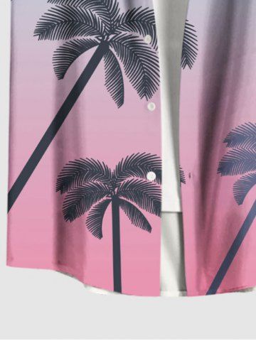 Chemise hawaïenne grande taille à imprimé cocotiers ombré et colorblock, boutons et poches, pour homme - Rose Clair - Rose Léger