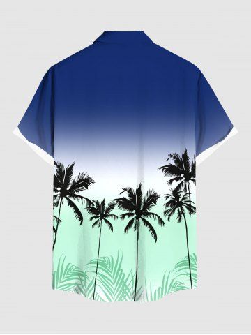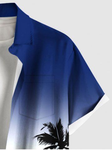Chemise hawaïenne grande taille à imprimé cocotiers ombré et colorblock, boutons et poches, pour homme - Bleu - Bleu